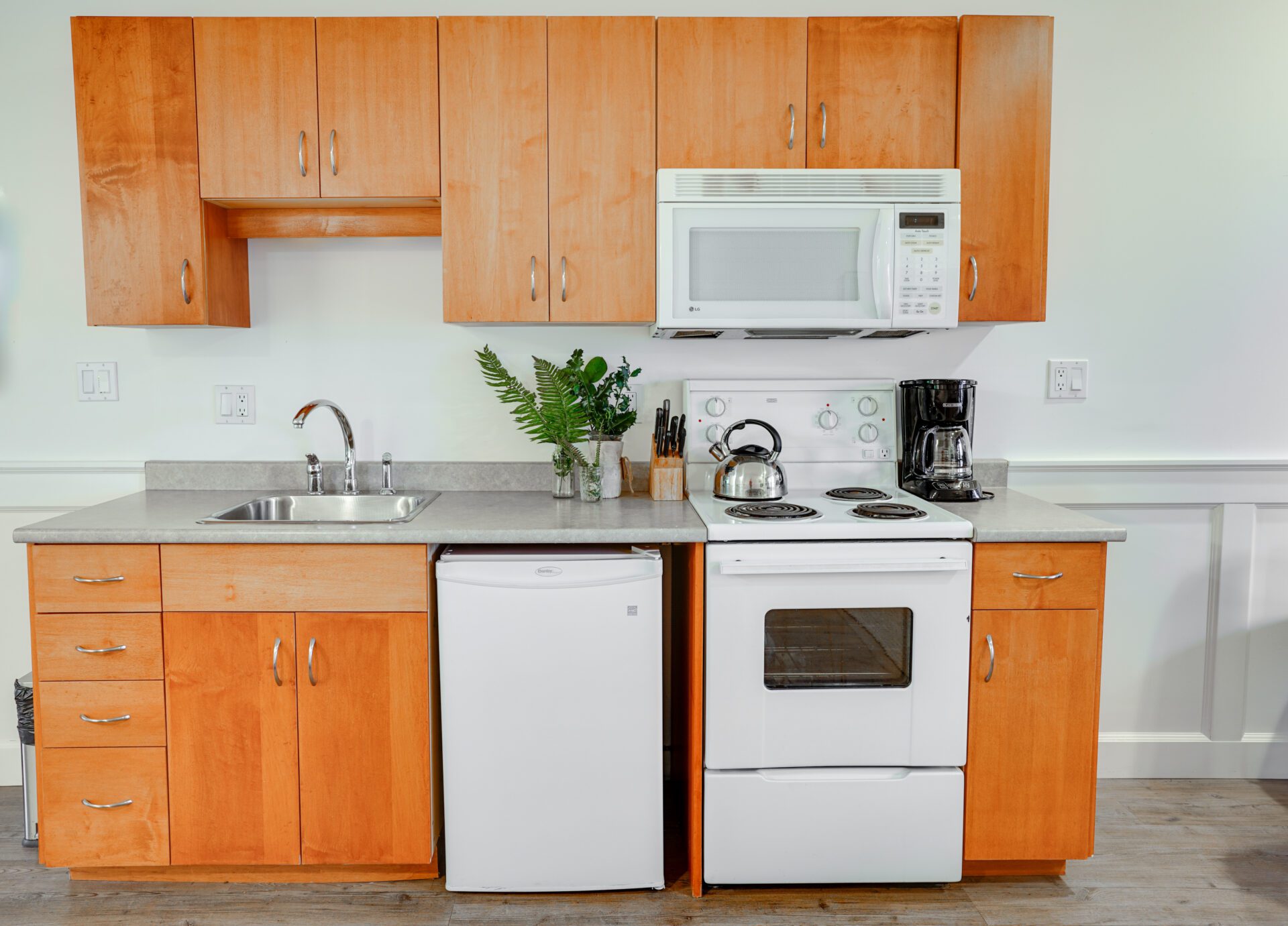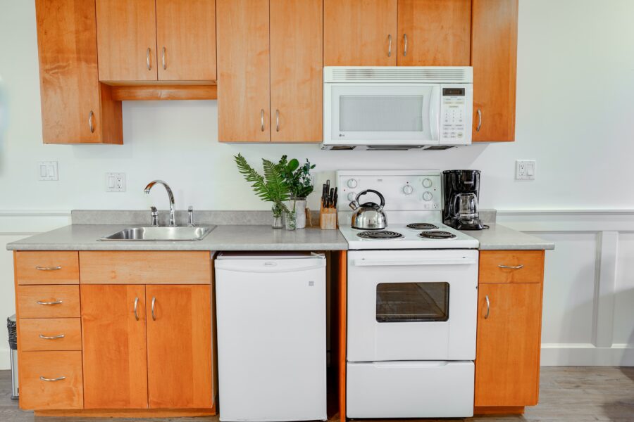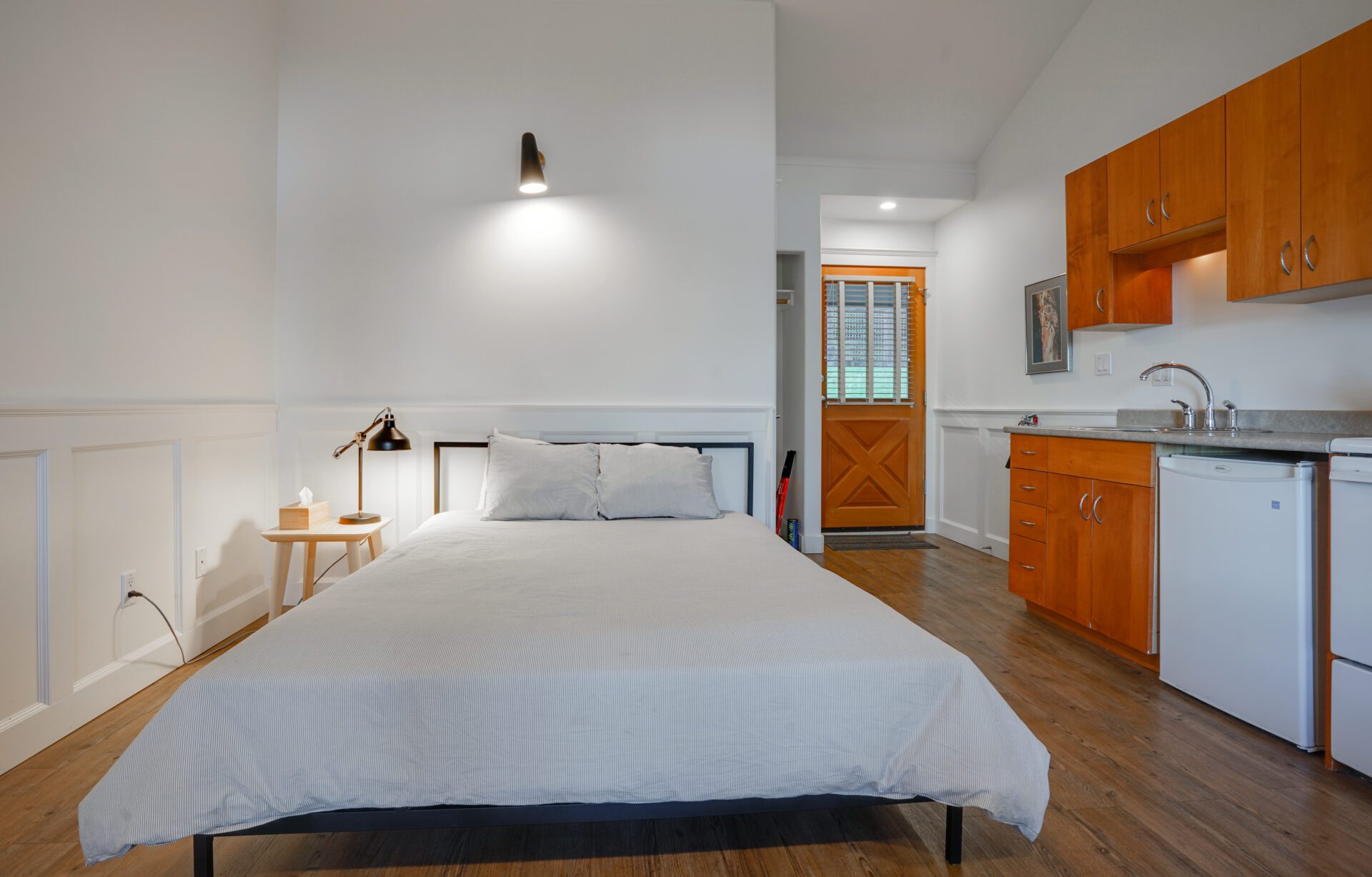 Our bright and airy studio suites feature a kitchenette, queen bed and French doors that open onto a waterfront view. This is the perfect suite to use as your base for outdoor adventures.