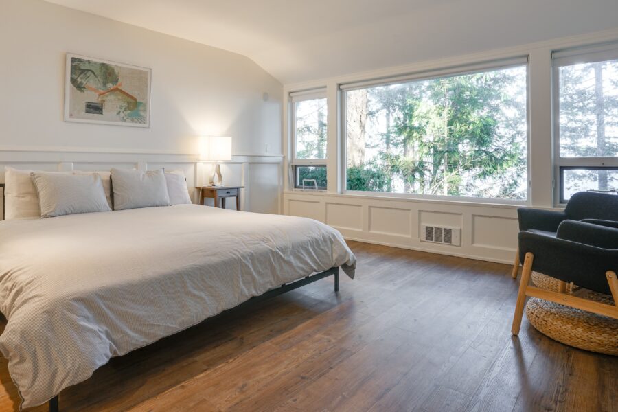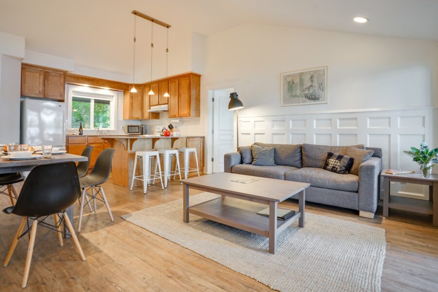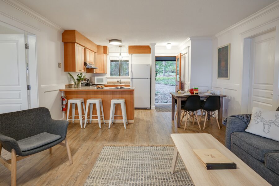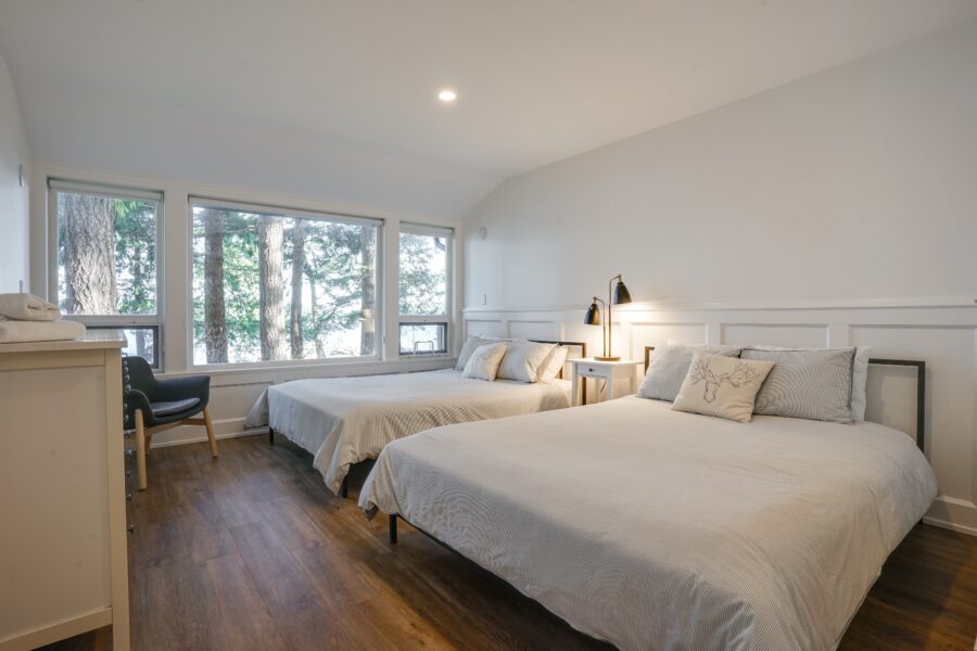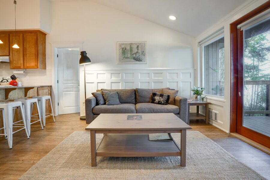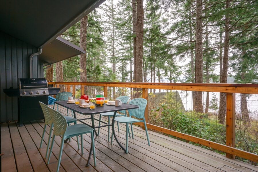 Up to 6 people can stay here comfortably, making this the ideal option for larger families or groups. One bedroom features a king bed while the other bedroom is either a bunk room or two queen beds. But you’ll likely spend most of your time on the large deck with BBQ.