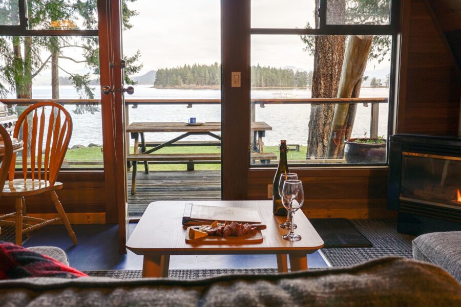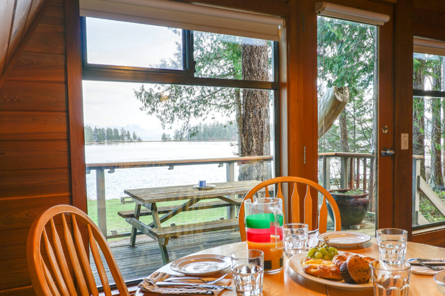 Private and perfect for two. Surrounded by towering conifers, this bright and charming beachfront Treehouse suite hovers among the trees where it offers a sensational view of Rebecca Spit for up to two people. Consisting of a full kitchen, bathroom and a studio-style living area with a queen bed. Enjoy your morning coffee on the nice deck with unobstructed views of the seals, blue herons and ocean.
